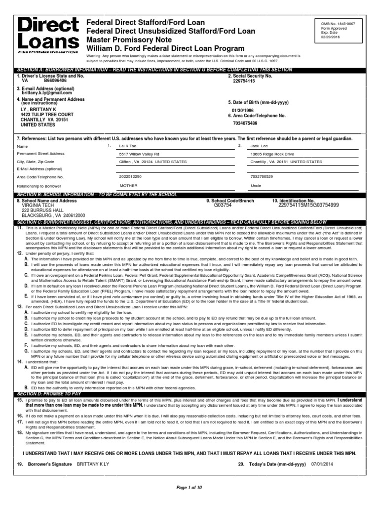 Federal Stafford Loan Master Promissory Note 093005 Pdf