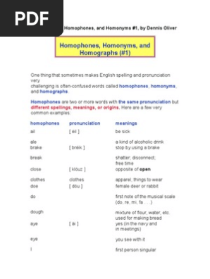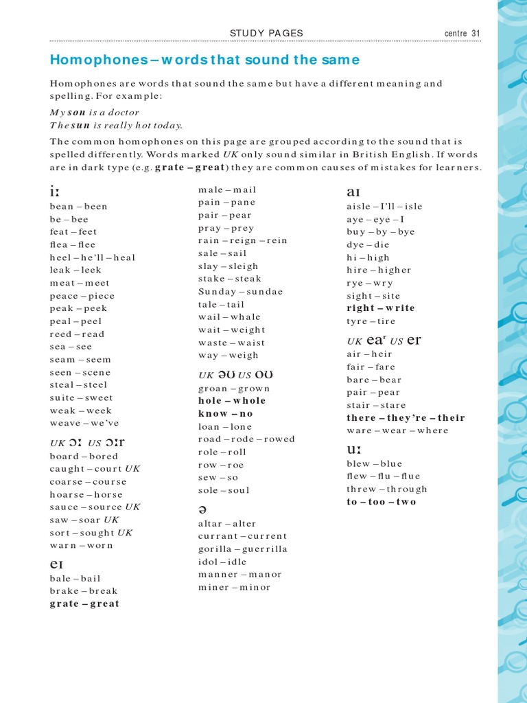Homophones In English